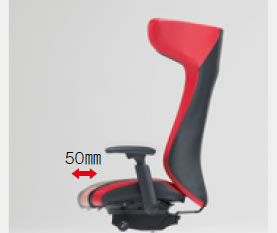 座面の左にあるレバー操作により、座面の奥行き調節が可能です。(ストローク:50㎜)※EXのみ