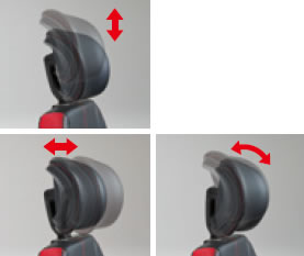 上下はもちろん、前後への移動や首振り機能も備え、絶妙なポジション設定が可能です。※画像はSDタイプです。