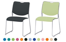 サンケイの背が樹脂タイプのスタッキングチェア。豊富な張地バリエーションがあります。
