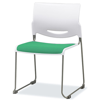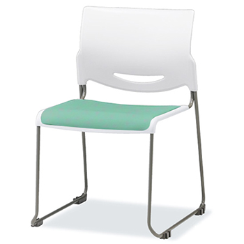 CM26-MY-W-HCN-13は、サンケイの背ホワイト樹脂スタッキングチェアで、布張りグリーンになります。