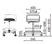 TD-35LN-Z-BK ノーリツイス 作業用チェア レザー張り 座面370Φ 足掛け付 ブラック