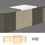 コミュニケーションを促進する、双方向からアクセスしやすいライブスシリーズのカウンター。幅1800型の両側エンド用、カラーは天板:ホワイト、本体:プライズウッドミディアム。