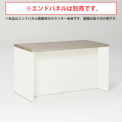 コミュニケーションを促進する、双方向からアクセスしやすいライブスシリーズのカウンター。幅1800型の両側エンド用、カラーは天板:モルタルグレー、本体:ホワイト。