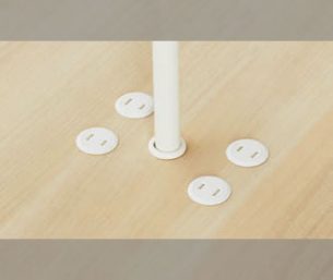ライブスシリーズのカウンター用エンドパネル。本体の配線空間へ繋がるコンセント付きです。カラーはホワイト、厚さ50mm。
