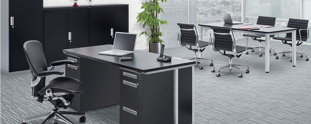 メタリックとブラックの構成が、シャープで都会的な空間を演出するエグゼクティブシリーズです。テーブル・デスク・ワゴン・書庫・ロッカーと一通りご用意していますので、コーディネートに悩む必要がありません。