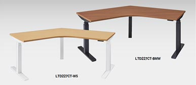 LTD227CT-BWNは、家具メーカーナイキの昇降ワークデスク リフティーナシリーズ。120度のコーナーデスクタイプ、天板色はダークウォールナットです。