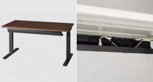 「+」「-」ボタンを押し続けると天板が上下昇降。670mm〜1250mmまでのお好みの高さで指を離せばストップ。