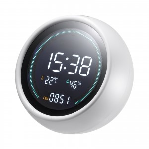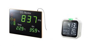 空間内の二酸化炭素濃度をチェックし、ディスプレイに数字で表示する測定器です。室内の環境を見える化することができます。