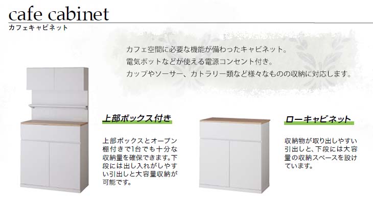 CF-0918BTP-WHとは、ナイキのカフェキャビネット上部ボックス付きで、本体色がホワイト天板がホワイトです。