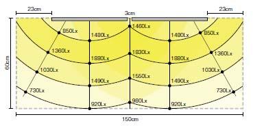 照明付きタイプは、照明下、天板面の広範囲で約800ルクス以上の明るさを確保。意匠面、機能面ともに優れた照明です。