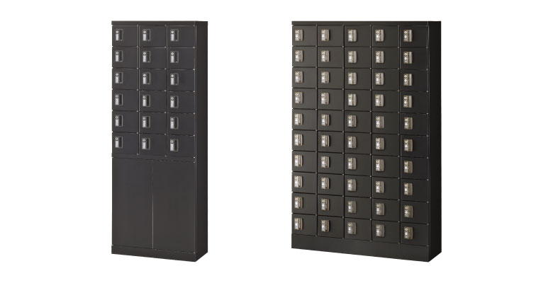 キータイプを選べる小物入れロッカーです。 最大50人用タイプまでお選び頂けます。