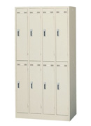 2列4段8人用のシリンダー錠タイプロッカーです。ニューグレー色のシンプルな国内生産のスチールロッカーになります。お見積になりますが別色もご用意しております。