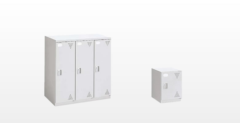 LKM1AN-AWは、組み合わせ、連結して使う1人用のミニロッカー。スタンダードなシリンダー錠付きタイプです。