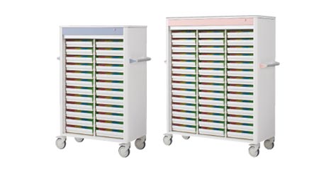 L8V7FE-ZE11 オカムラ リレイト注射薬カート 浅型トレー32床用オープン ピンク
