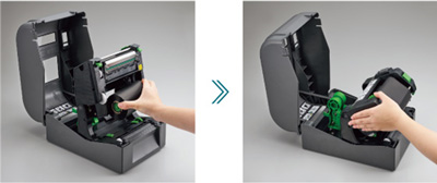 TD-4520TNは解像度300dpiモデルで、通常の約3倍の長さのインクリボンを装着できるラベル幅4インチ対応の熱転写ラベルプリンターです。主に製造業での使用を想定しております。感熱方式での使用も可能です。