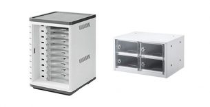 最大20台保管・充電できるApple iPhoneやAndroidなどのスマートフォン用卓上タイプの小型充電保管庫。