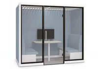 内面両サイドのパネルは吸音仕 様です。ブース内での音の反響を軽減し、会話しやすい環境を作り出します。