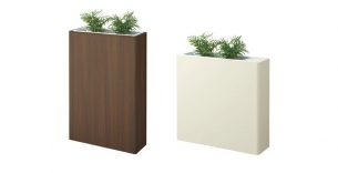 GR2001は、株式会社ベルクが手がける、コンパクトなデザインが特長のグリーンカーテンタイプ・パーテーションです。木目シート仕上げの本体フレームが、空間にやさしいナチュラルな印象を与えます。