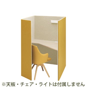 ワークブース「ココモリ」の1人用ブース本体。パネルカラーはイエロー、脚部カラーはホワイト。天板やソファは別売です。扱いやすく、手軽に快適な籠り空間を創出します。