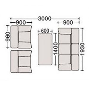 - サイズ: 幅1930×奥行900×高さ755(座面高390)mm