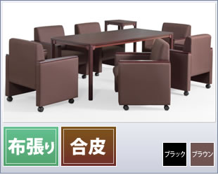 軽快な色調で応接会議のスペースを自在に演出します。 チェアには大型キャスターが付属し、移動も簡単です。