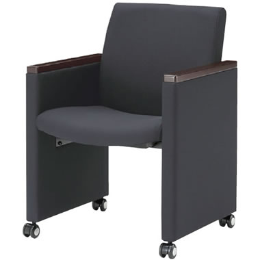 応接会議椅子のスタンダードタイプは、張地と木肘の組合せでスペースを自由に演出することが可能です。付属のキャスターで移動も手軽です。