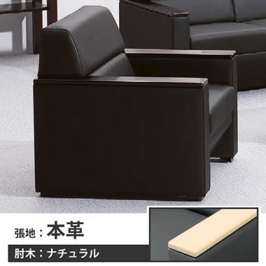 8301JB-P891は、応接家具S-1Rシリーズの、抗菌・耐アルコール・耐次亜塩素酸ナトリウム性ビニールレザーを使用した応接ソファーです。ウォールナットの肘木付き。