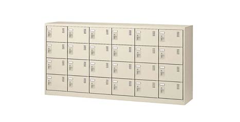 SLB-M416-S2は、16人用のシリンダー錠扉付きシューズロッカーです。4列4段。