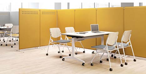 フェルト素材のパネルです。パネルには孔があり、適度に人の気配を感じさせつつ、音や視線を遮ります。