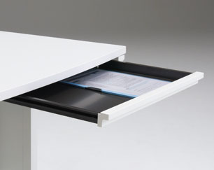 メンテナンスのしやすい開閉式の配線カバー。机上面からコード類を任意の位置に落とし込むことができます。
