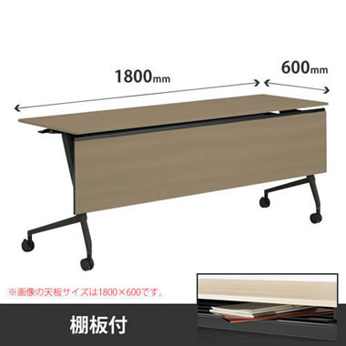 天板下に棚板が付いたタイプもラインナップ。書類やファイル等の収納に便利です。