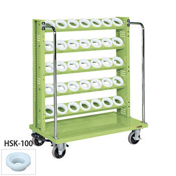 幅1030mmの5段ツーリングワゴン。ホルダーはHSK-100P型、キャスターはフットブレーキ付き。本体カラーはグリーン。